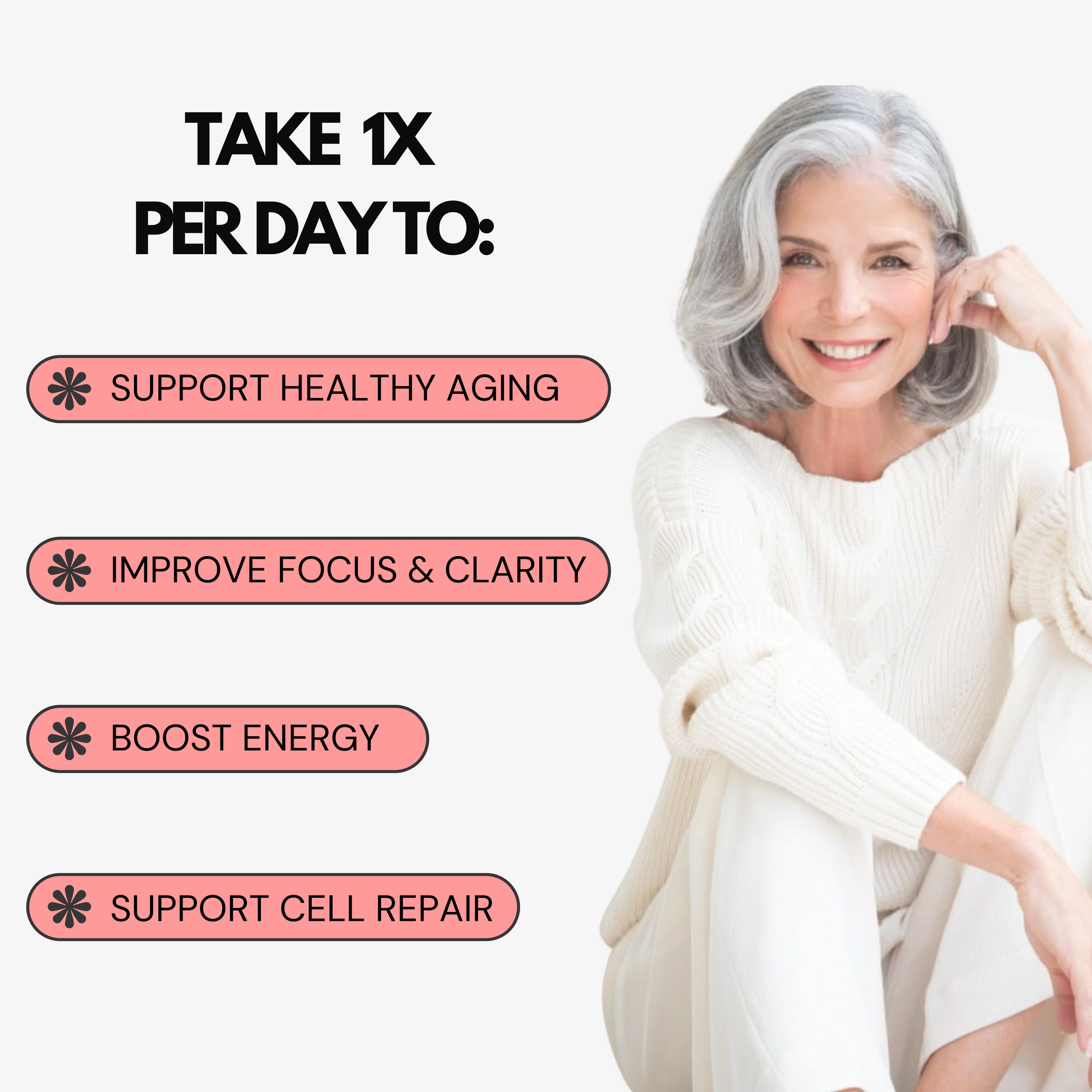With clinically proven ingredients designed to help slow down aging and increase energy levels, it’s only a matter of time before you start to see and feel the difference. That’s why we offer a 30-day money-back guarantee — so you can try it with total confidence and zero risk.